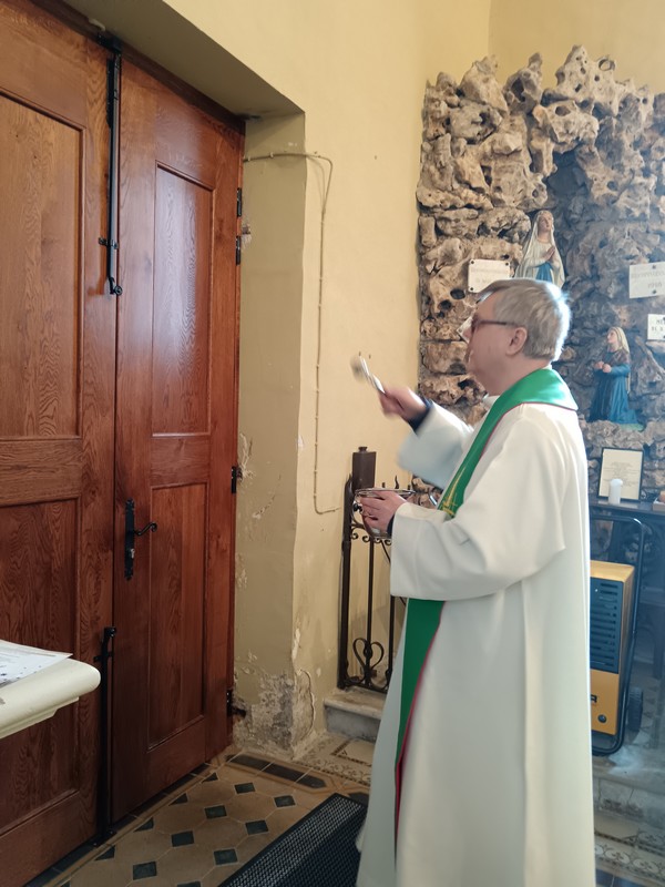 Elle furent bénites par l’Abbé Edward Ksiazkiewicz assisté du Diacre André Viville lors de la messe du 12 octobre 2025.